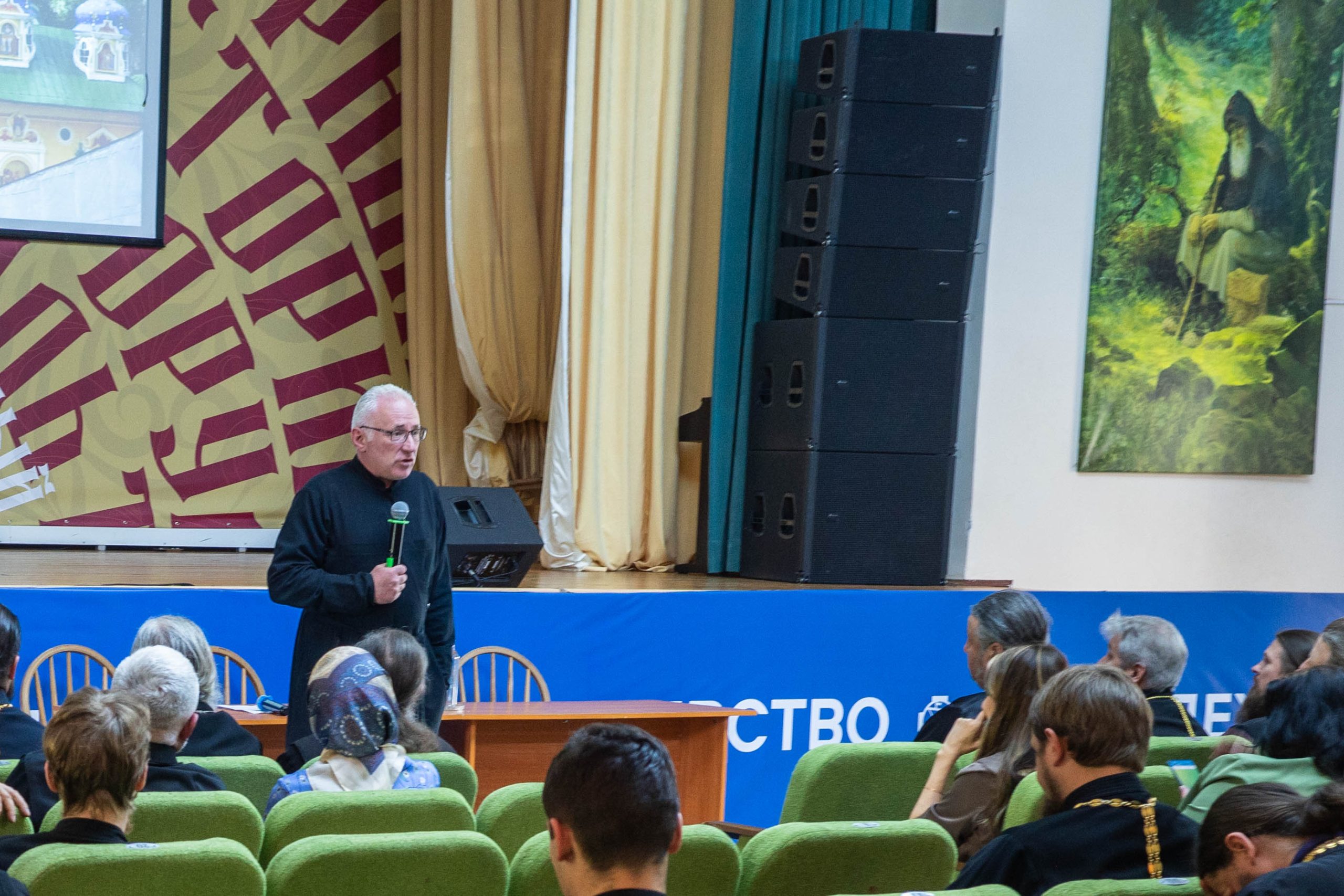 Сегодня в рамках секции «Пастырское сопровождение (окормление) участников СВО и членов их семей», проходившей в рамках XVI Международных Александро-Невских чтений, семинаристы и духовенство Псковской епархии встретились с руководителем «Центра кризисной психологии и профилактики деструктивного поведения», президентом благотворительного фонда «Выход есть всегда», заместителем председателя Общественного совета при ФСИН России Михаилом Игоревичем Хасьминским.