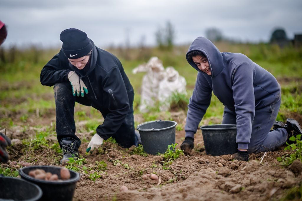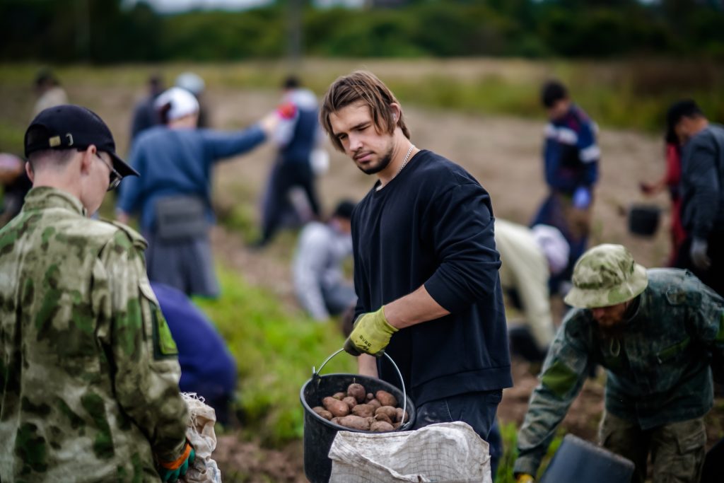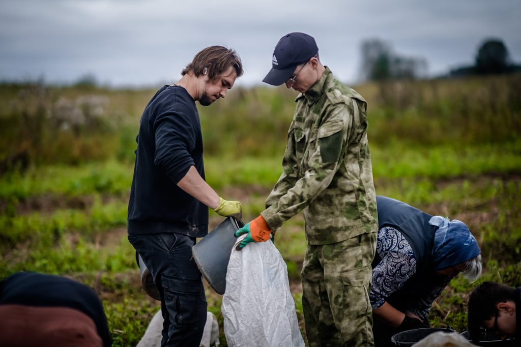 Семинаристы собирают картошку на монастырском поле