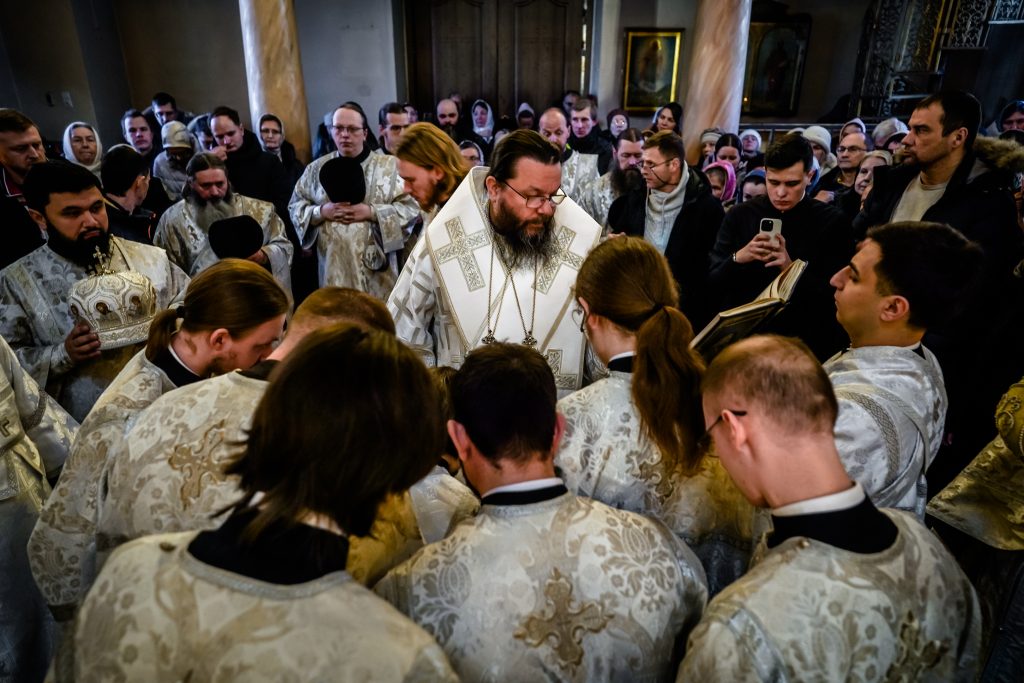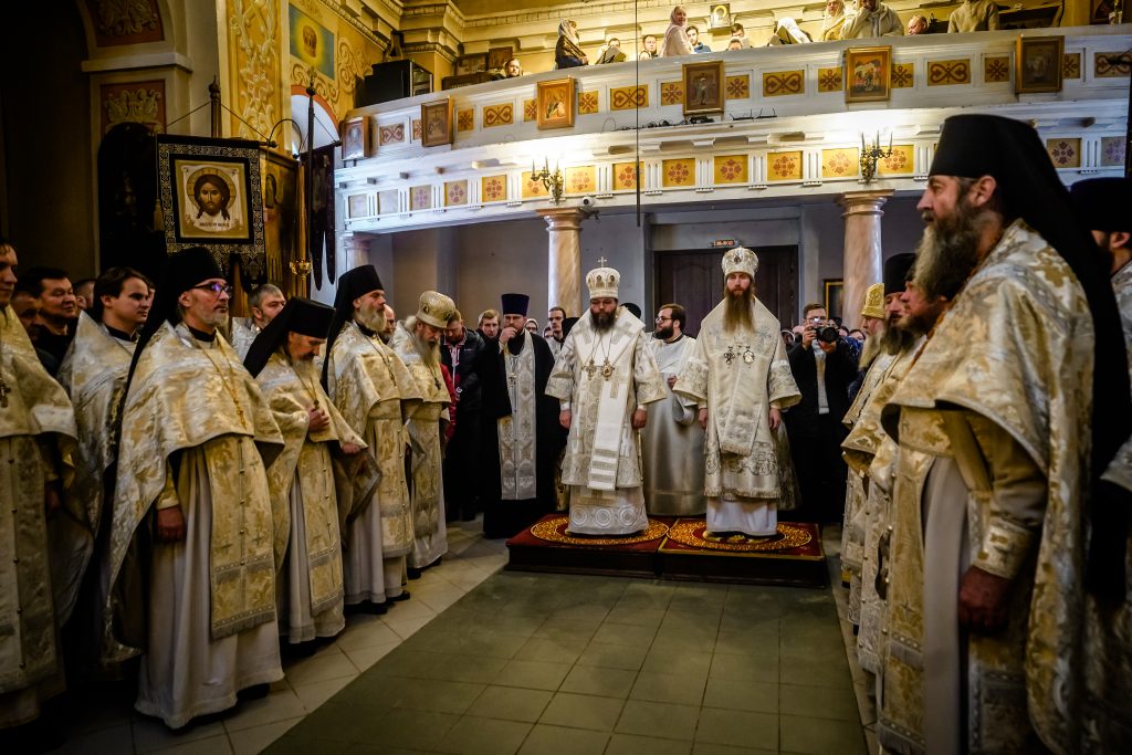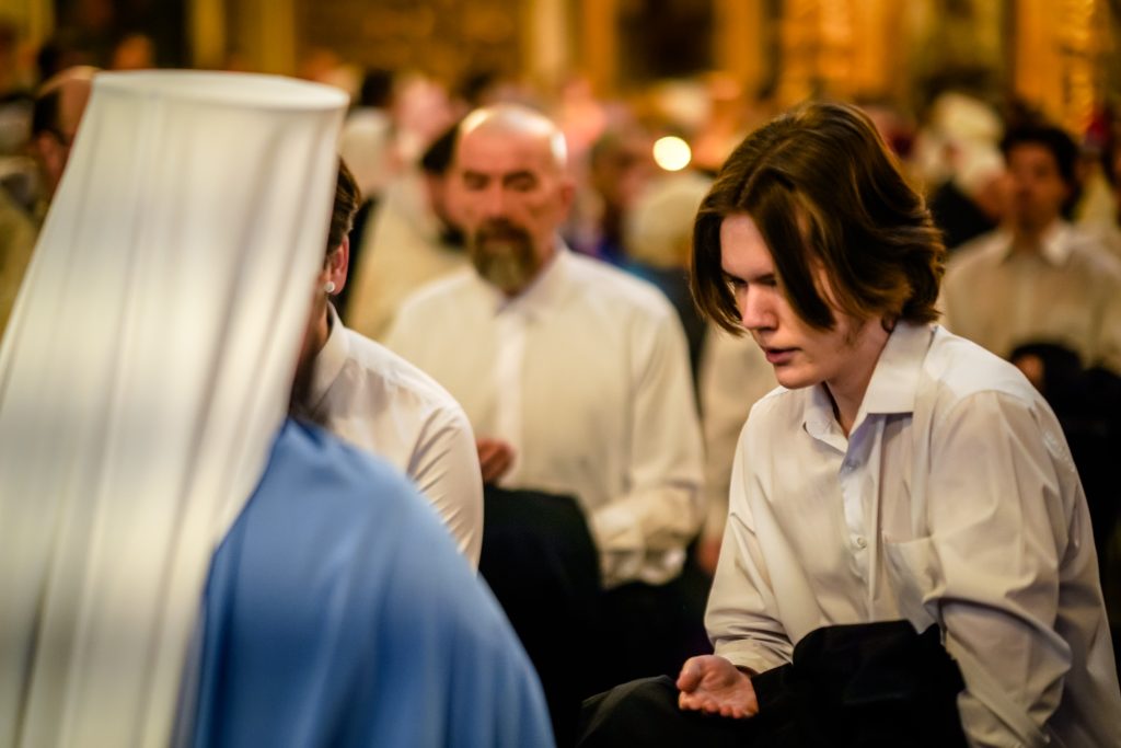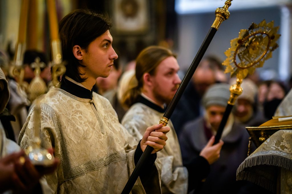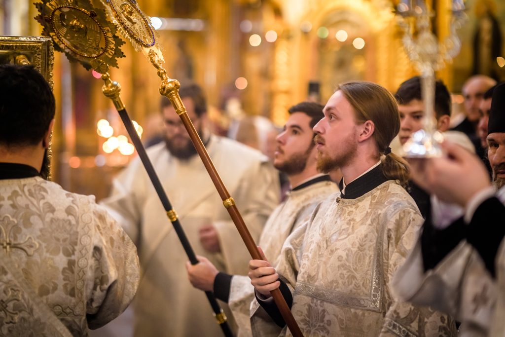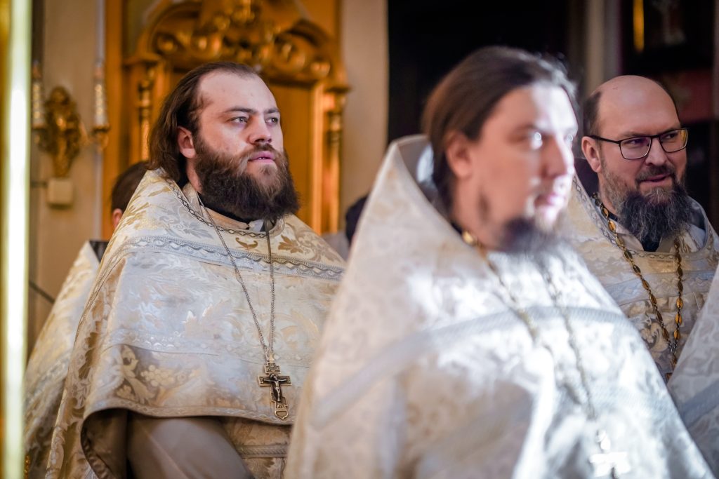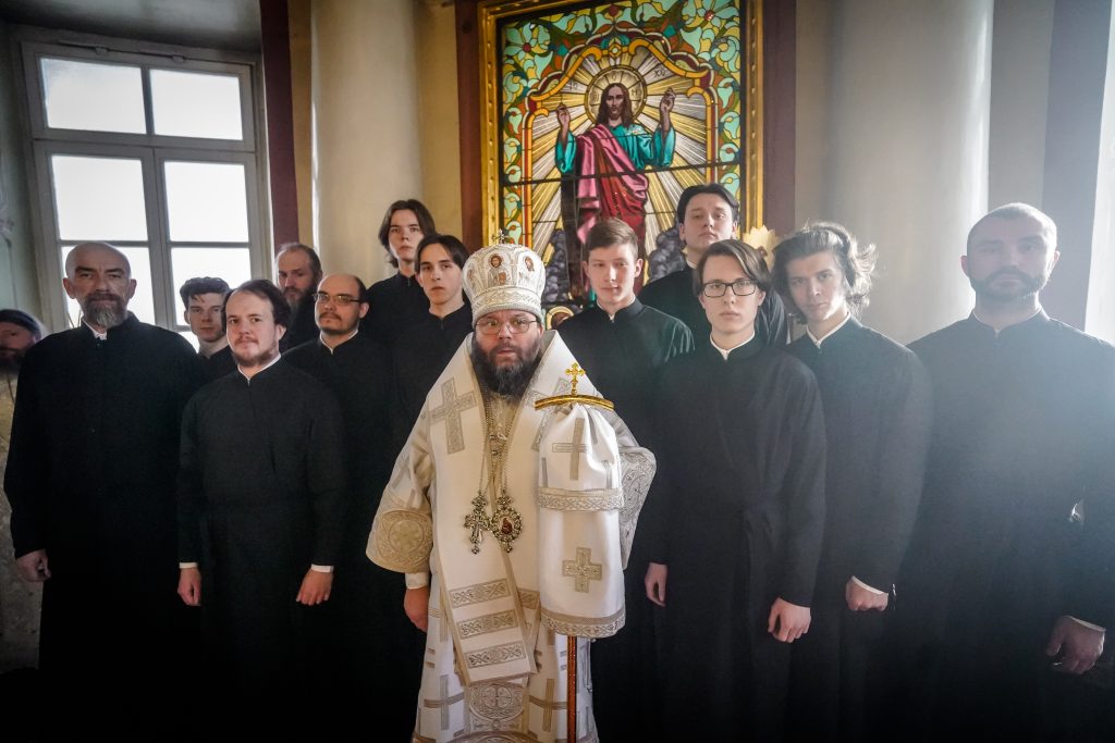 Традиционно в этот день, перед богослужением, студентам 1 курса были вручены подрясники, а студенты выпускного 4 курса были пострижены в чтецы.