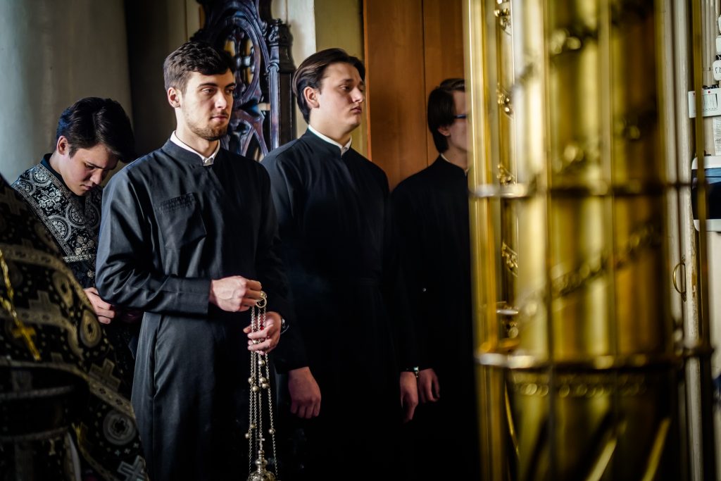 За богослужением молились преподаватели и студенты Псково-Печерской духовной семинарии.