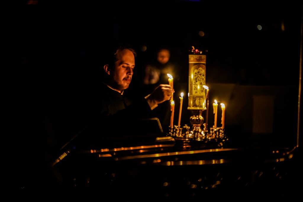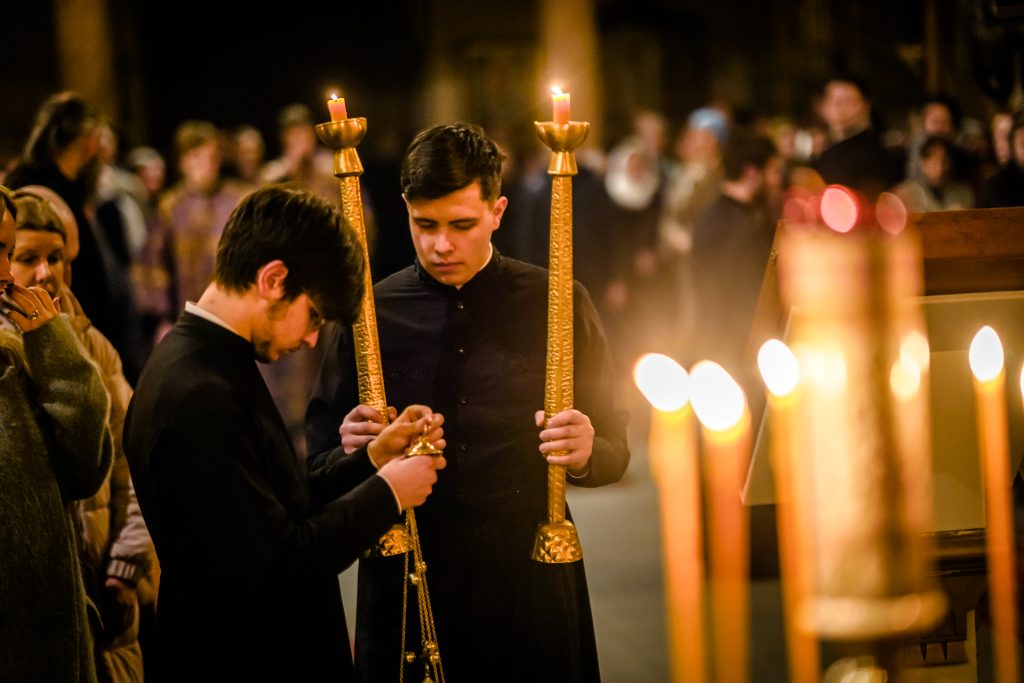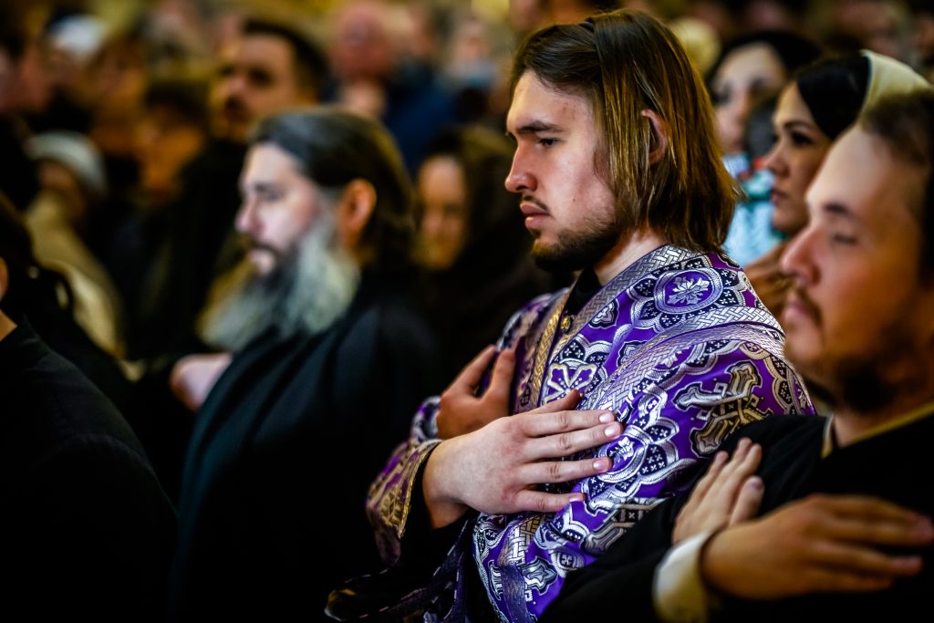 За всенощным бдением и Божественной Литургией молились ректор, преподаватели и студенты Псково-Печерской духовной семинарии.