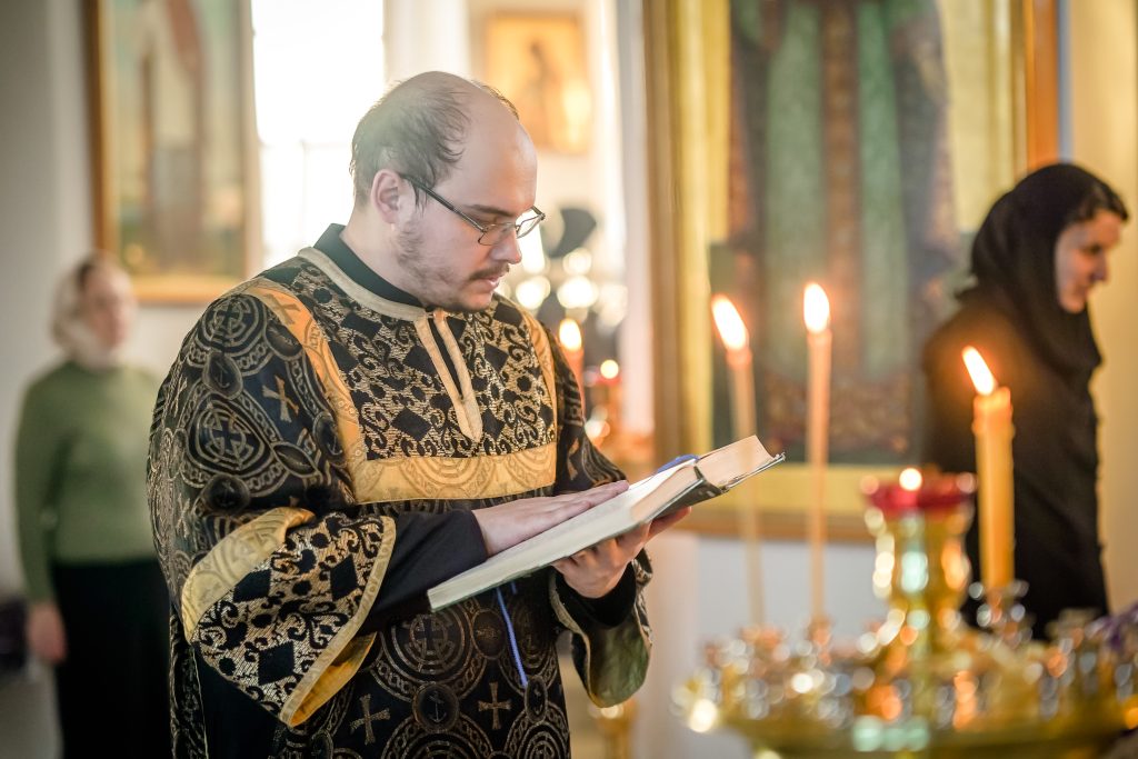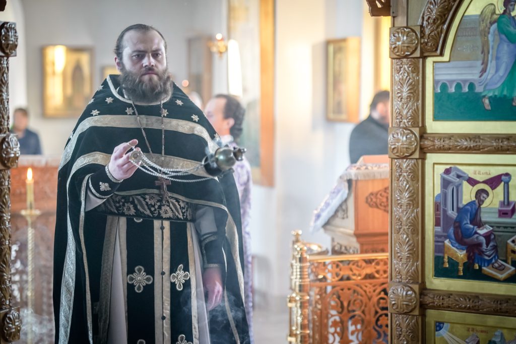 В среду 4-й седмицы Великого поста, студенты Псково-Печерской духовной семинарии, вместе с проректором по воспитательной работе иереем Андреем Кичайкиным, молились за общесеминарской Литургией Преждеосвященных Даров.