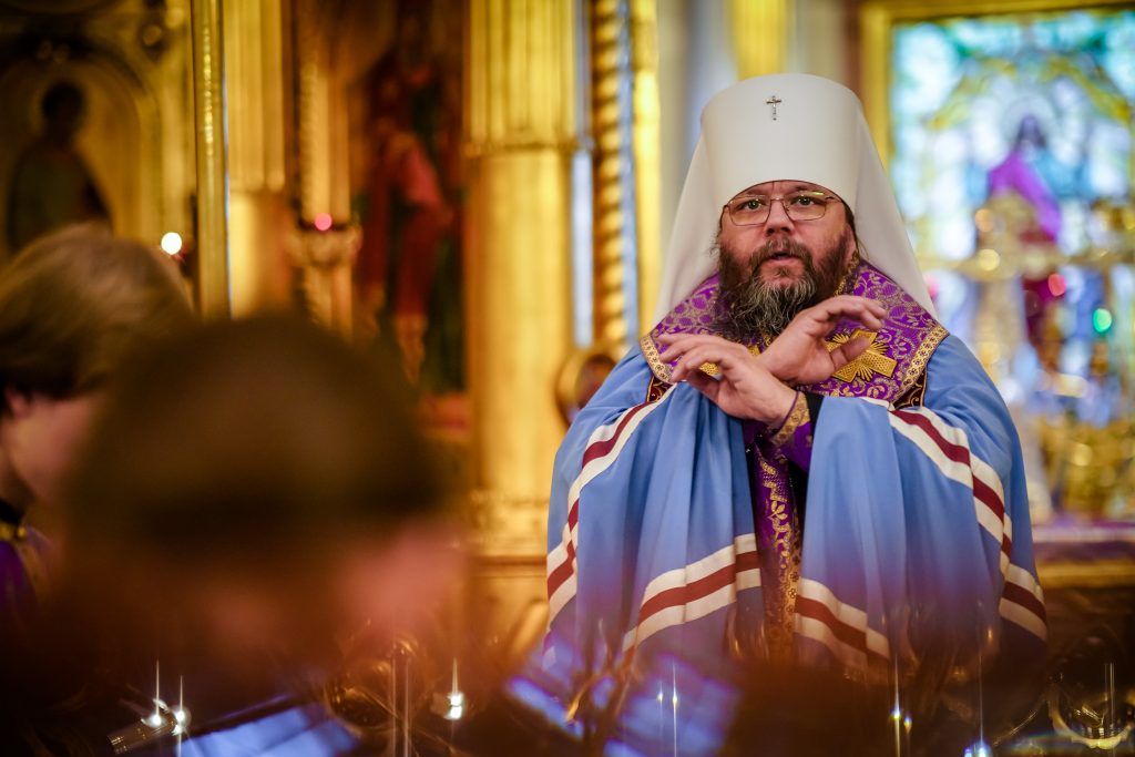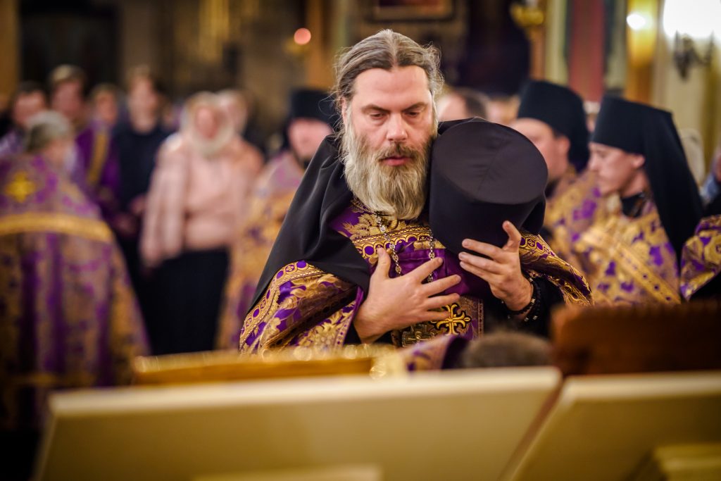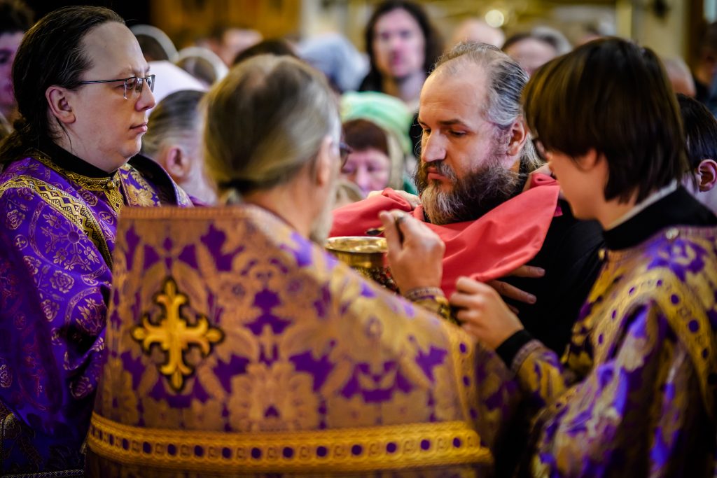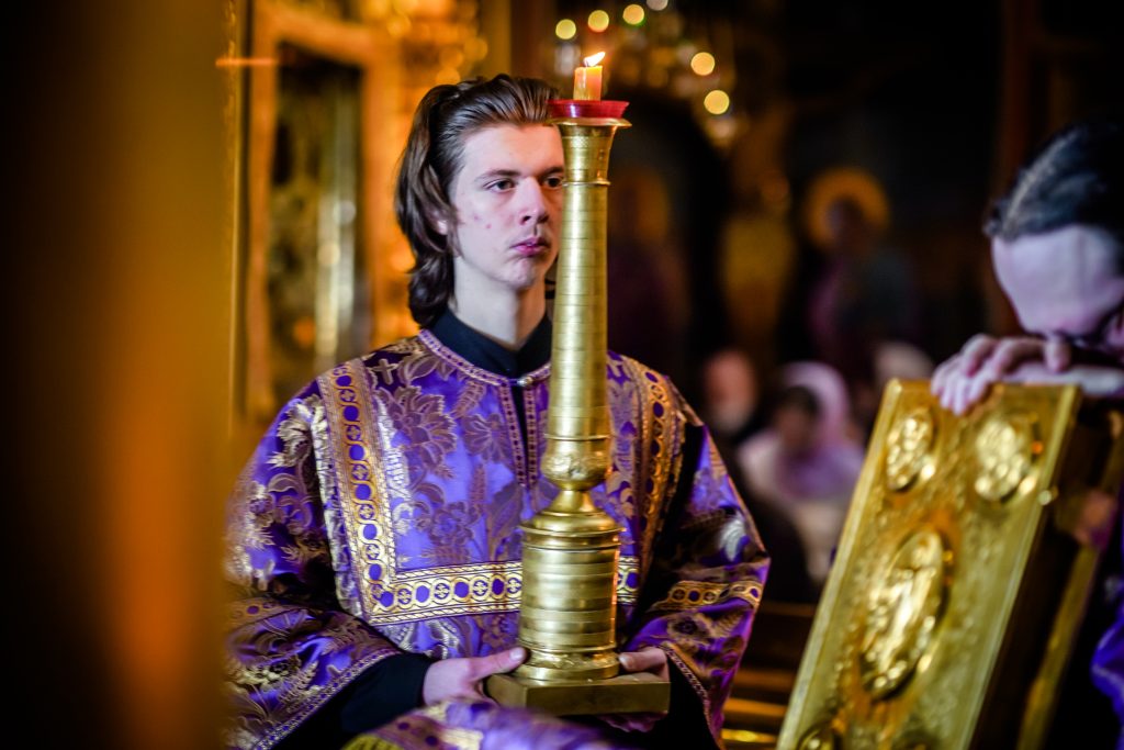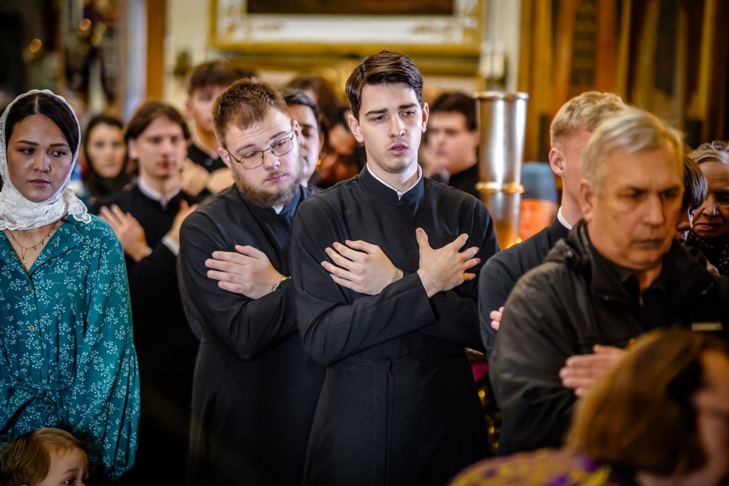 За всенощным бдением и Божественной литургией молились ректор, преподаватели, студенты Псково-Печерской духовной семинарии, гости из Санкт-Петербургской духовной академии.